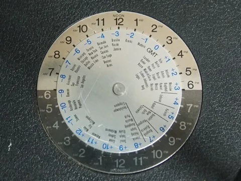 電池ホルダ蓋には時差の早見表(というか円形計算尺の一種?)が付いています。