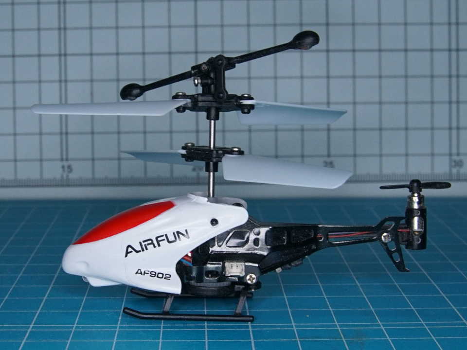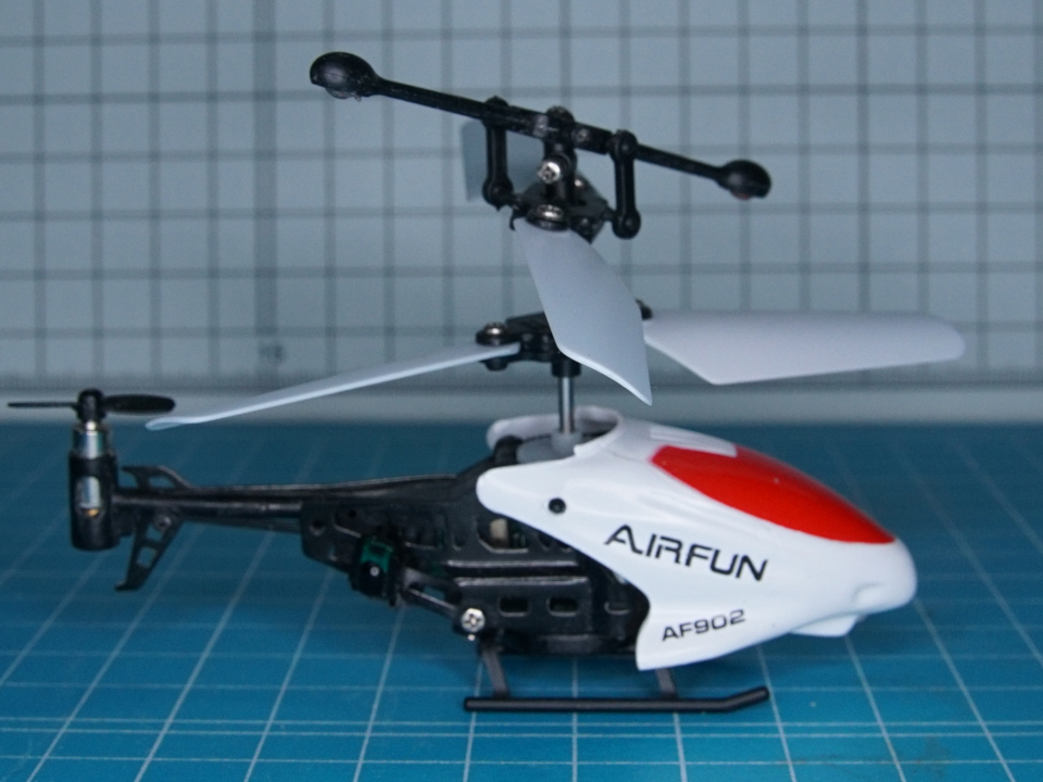 破壊しない限り中は見られそうにないので外観からの想像ですが、モーターはメインローター用とテールローター用の2つのみのようです。これでどうやって操縦できているのでしょう?